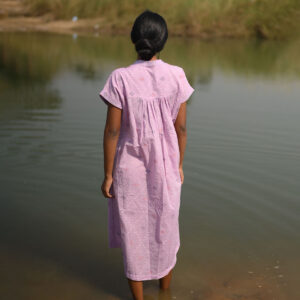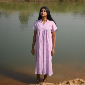 A soft, breathable dress crafted in lightweight fabric, adorned with delicate handwoven Jamdani motifs and fine handcrafted embroidery. Designed in a relaxed, flowing silhouette for effortless movement and everyday comfort. Graceful, minimal, and timeless.